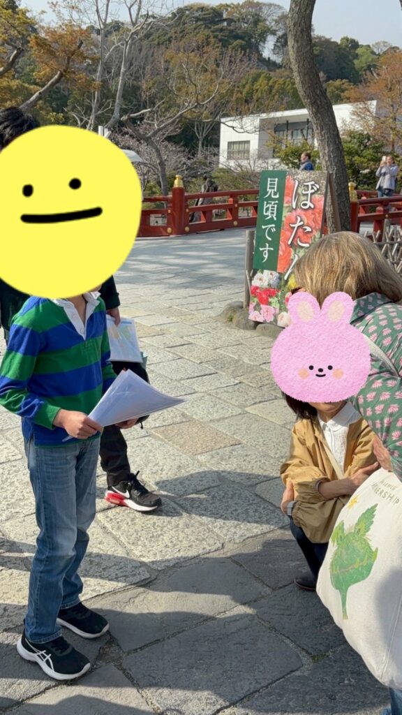 オーストラリアから来たご家族にインタビューし、「羊羹」をプレゼントしました。