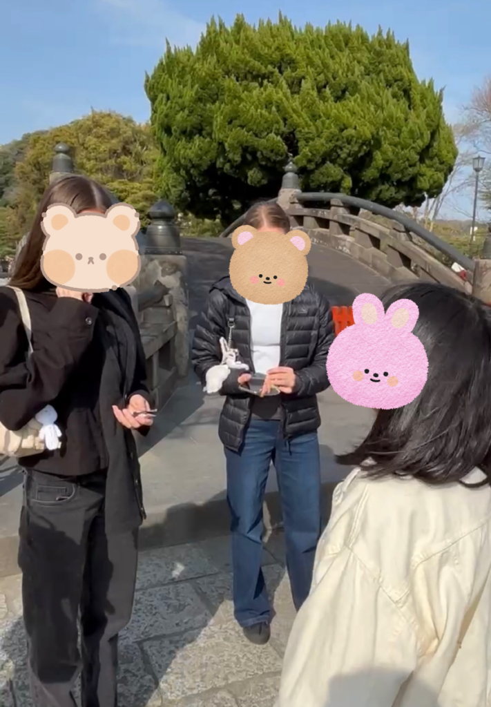 満開の桜と快晴の青空に恵まれ、たくさんの外国人観光客の方々と交流することができました。